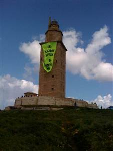 11:05 Primera foto de la Torre de Hércules con el lema, UE:Salvad la Pesca