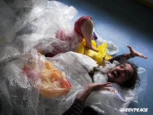 La actual crisis del petróleo debería hacernos pensar sobre la producción y consumo de plásticos, materiales que en su mayoría son fácilmente reemplazables por otros menos dañinos. La foto refleja a una pareja, ahogada y al borde de la extenuación, debido al sobreconsumo de plásticos. No te ahogues, rechaza el plástico de un sólo uso, y apuesta por materiales más duraderos.