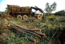 Procesadora realizando labores de descortezado y corta de troncos de eucalipto. Foto: Miguel Ángel Soto