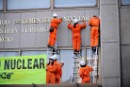 Greenpeace cambia el rótulo de la fachada del Ministerio para reflejar la orientación pronuclear de la política energética del Gobierno