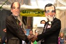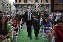 Escaladores de Greenpeace despliegan una pancarta de 90 metros cuadrados en el edificio Vincci Capitol de Callao con las “fotos de boda” de Rajoy, Aznar y González y sus parejas de las compañías eléctricas. La organización denuncia el “matrimonio...