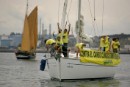 La tripulación del Arctic Sunrise en el Ártico, canal de Robeson, al 82,4 Norte, cerca de la frontera entre Canadá y Groenlandia.