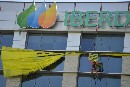 Esta mañana un grupo de activistas de Greenpeace ha acudido a la sede de Iberdrola de Madrid donde han desplegado varias pancartas con el mensaje "Iberdrola, enemigo de las renovables".